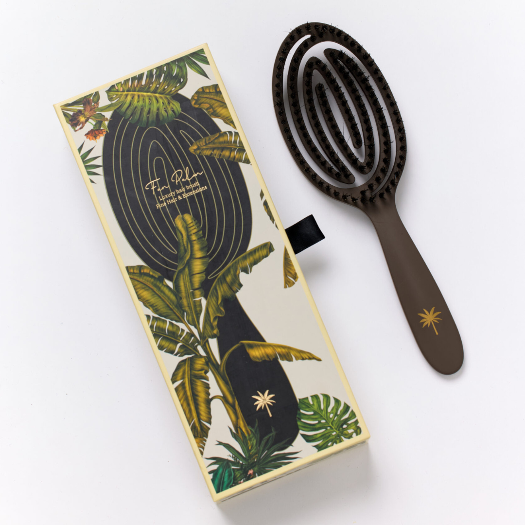 Fan Palm’s fijn haar/extensionsborstel geeft glans en gladheid aan het haar. De nylon borstelharen zijn langer om de hoofdhuid zachtjes te stimuleren en het haar te ontwarren, terwijl de echte varkenshaartjes de talg helpen verdelen. Het stimuleert de bloedtoevoer naar de haarzakjes en de meesten vinden dat ze de frequentie van het wassen van het haar kunnen terugbrengen tot elke drie of vier dagen.