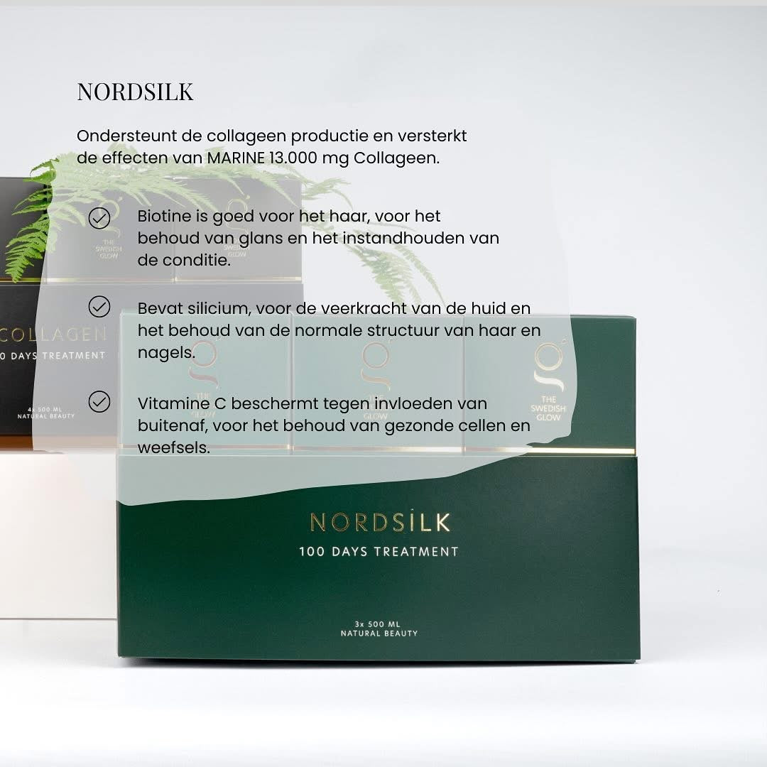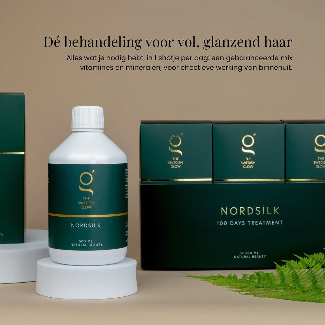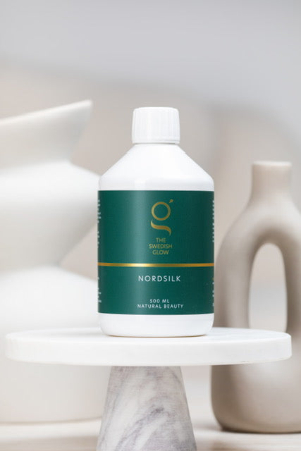 The Swedish Glow NORDSILK is zorgvuldig samengesteld om haargroei, versteviging en glans te verbeteren. Het bevat essentiële bouwstoffen voor de opbouw van keratine, voorkomt breken en stimuleert extra aanmaak. Het helpt ook fijne lijntjes te verminderen en versterkt de collagen verbindingen.